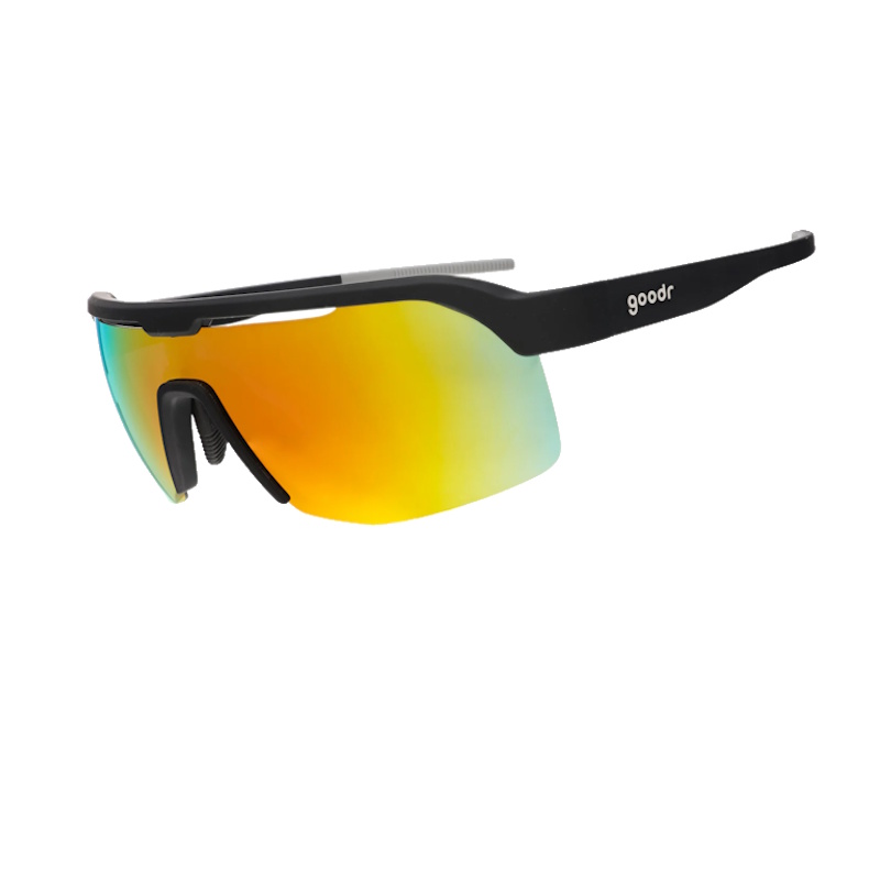 These black shield sunglasses with half-rim frames and burnt orange reflective lenses won’t slip or bounce when you spike the ball and promptly follow that up with a legendary victory dance in the endzone that can only be described as a twerkout.
