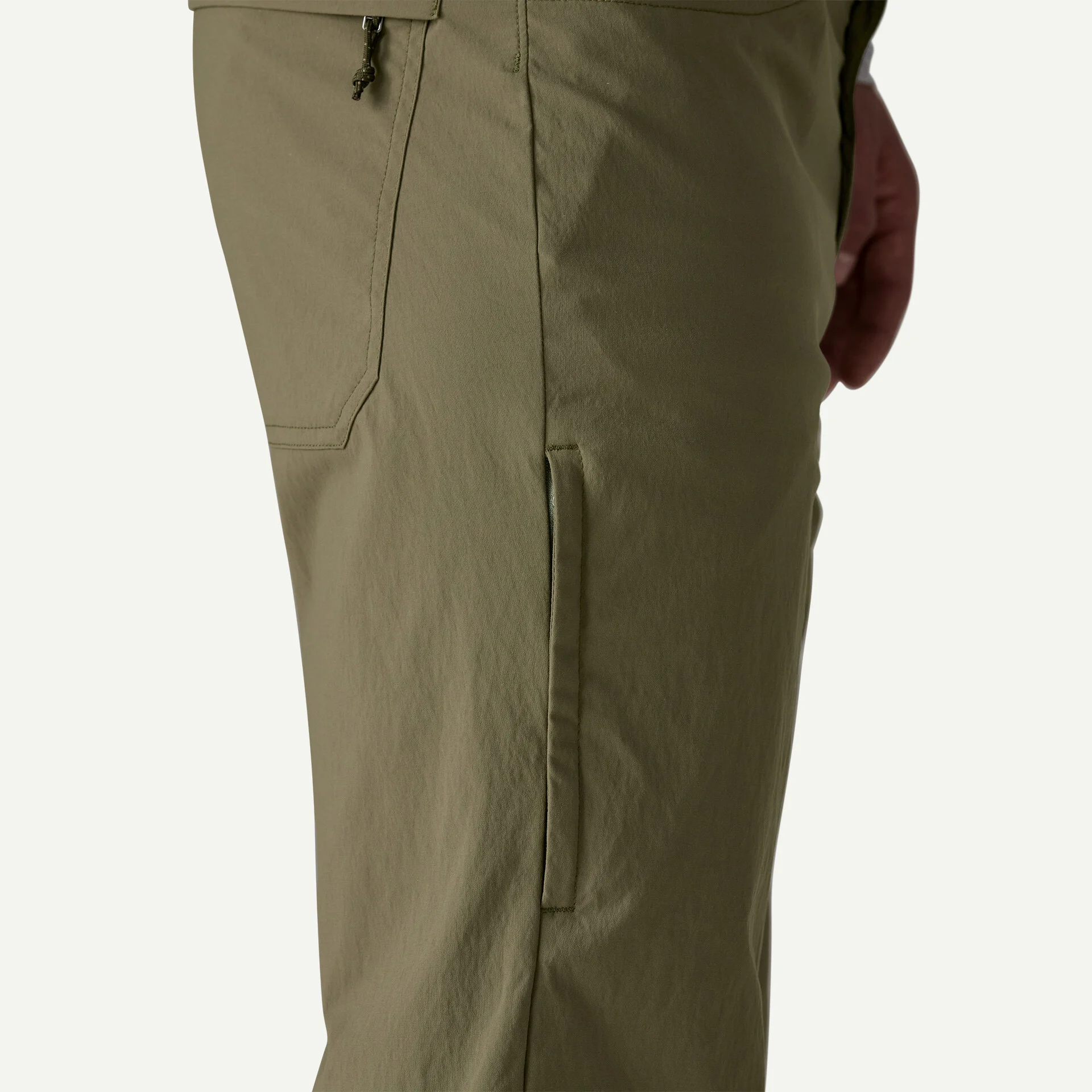 Light and technical, the movement-oriented Quandary Pant is made from a strong, lightweight and quick-drying fabric with a DWR (durable water repellent) finish to resist moisture. The curved waistband follows the contours of your hips for a personalized fit, while a gusseted crotch and articulation in the knees allow a full range of motion. They have front handwarmer pockets (the right with a coin pocket), two rear pockets and a right-thigh pocket with a security zipper so you know exactly where you put your keys. Details include wide, reinforced belt loops, zip fly with metal web-button closure and 50+ UPF sun protection. Inseam is 32”.
