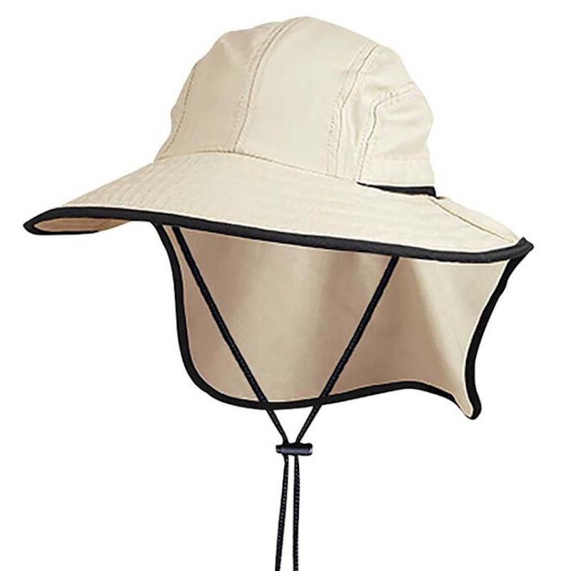 Functional and provides great coverage for being out in the sun.  Great for hiking with a large hiking pack that might interfere with a regular broad brimmed hat.