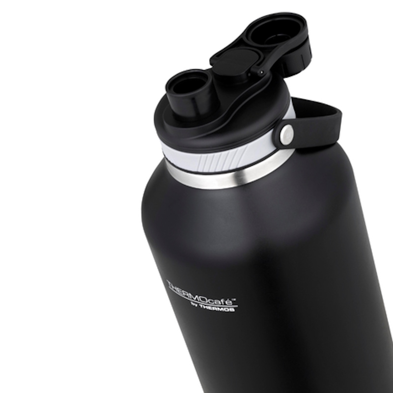 Big, bold and cold; quench your thirst with the THERMOcafé™ Stainless Steel Hydration Bottle! This high capacity drink bottle features double wall vacuum insulation to keep your beverages perfectly cold. The stainless steel interior and exterior provide long-lasting performance, while the leak-resistant, screw-top lid ensures a secure seal. Carry it comfortably with the soft handle, making it perfect for everyday. This bottle is recommended for cold beverages only and comes with a 5-year warranty on vacuum insulation, offering you reliable performance for years to come.